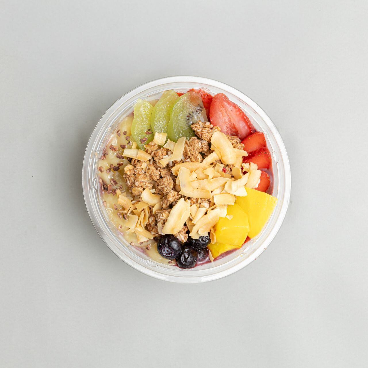 シンプルアサイーボウルをベースに、マンゴーやキウイ、ココナッツチップ、カカオニブなどを組み合わせた、彩り豊かなスペシャルレシピ。甘み・酸味・食感のバランスがよく、最後まで飽きずに楽しめます。朝食や軽食はもちろん、気分を上げたい日のご褒美にもおすすめ。フルーツとトッピングの満足感で、しっかり食べたいときにも頼れる一杯です。
