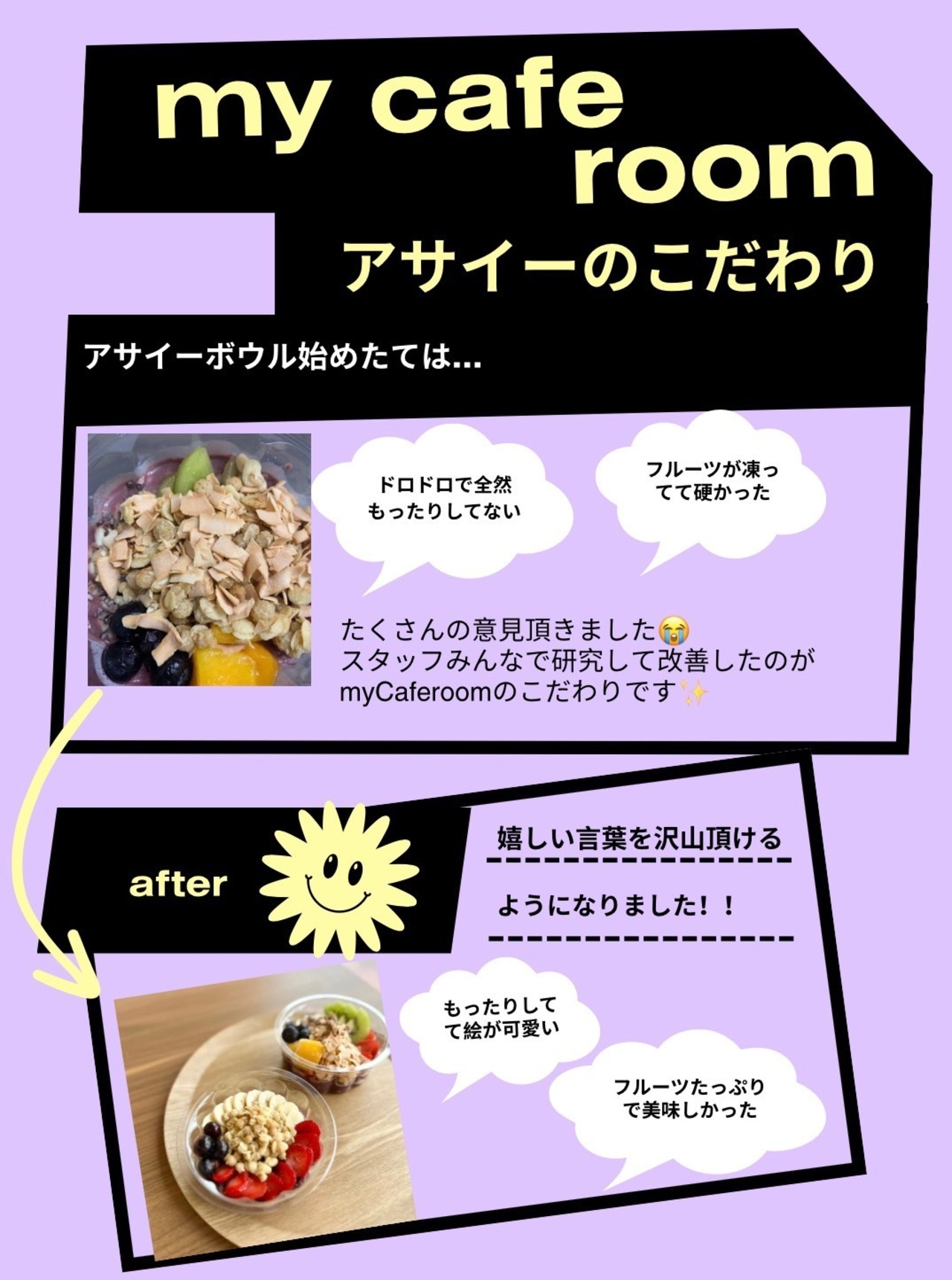 •自分で好きなフルーツやシリアルを自由に盛り付けられて、映えのアサイーボウルをつくる事が可能