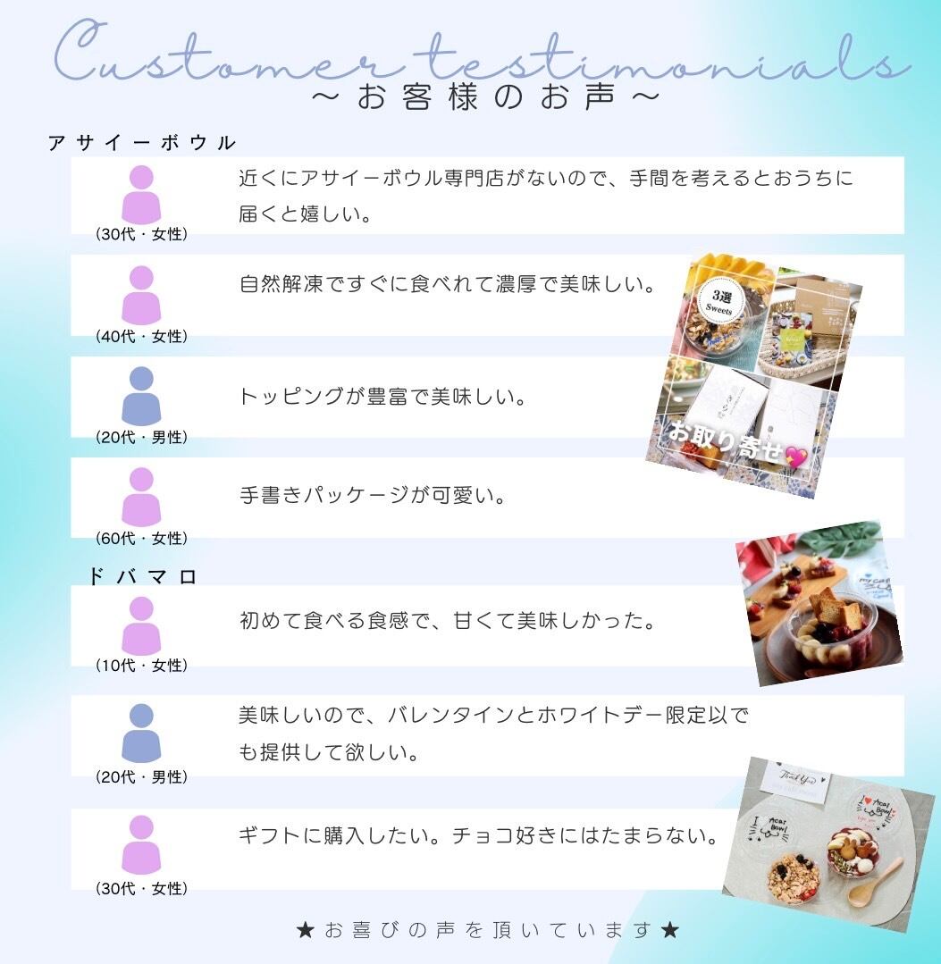 ・30代女性:近くにアサイーボウル専門店がないので、手間を考えるとおうちに届くと嬉しい